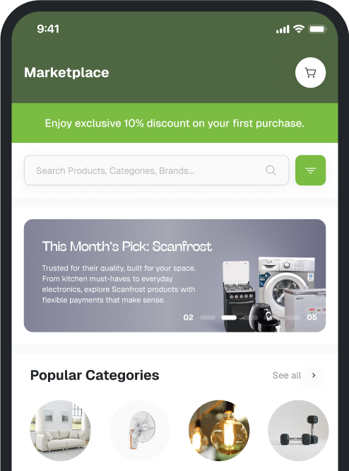 We built the Marketplace to remove the financial pressure that often comes with settling into a new home. With flexible payments and trusted products, furnishing your space has never been easier.